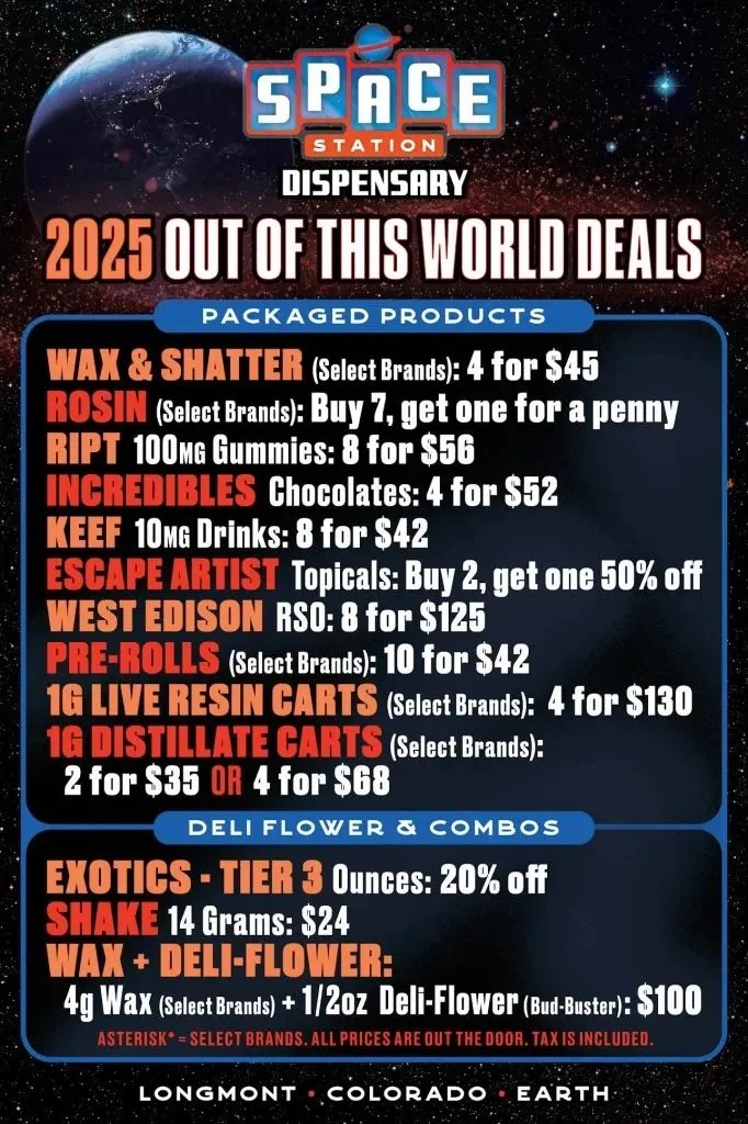 The lowest prices in the galaxy are right here. Visit us for the best pricing and widest variety of any dispensary in Longmont. See for yourself…